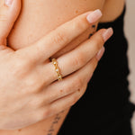 Elevate your style with the graceful curves of our 14K solid gold wavy double beaded band. Featuring five round brilliant ideal-cut diamonds, prong-set to perfection, this piece showcases a unique wavy design that radiates refined beauty.